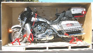 POP UP® STANDARD CRATES. INTERGROUP GLOBAL FORWARD LTD. PROVIDES CRATING SERVICES FOR CARS, MOTORCYCLES, ATV'S, AND OTHER DELICATE ITEMS FOR TRANSPORT BY AIR, LAND OR SEA. COMPLETE DEALER AND AUCTION SITE TRANSPORT SOLUTIONS PROVIDED. MOTORCYCLES ARE SECURED WITH HIGH QUALITY MOTORCYCLE STRAPS. ALL CONNECTION POINTS ARE PROTECTED WITH SOFT STRAPS. CRATE CONSTRUCTION IS INTERNATIONALLY APPROVED FOR EXPORT. SAVE TIME AND MONEY WITH OUR POP UP® CRATES! NO TOOLS REQUIRED FOR ASSEMBLY. SOFT TIES, STRAPS, AND RAMP INCLUDED TO PROPERLY SECURE YOUR MOTORCYCLE OR YOUR ATV. |